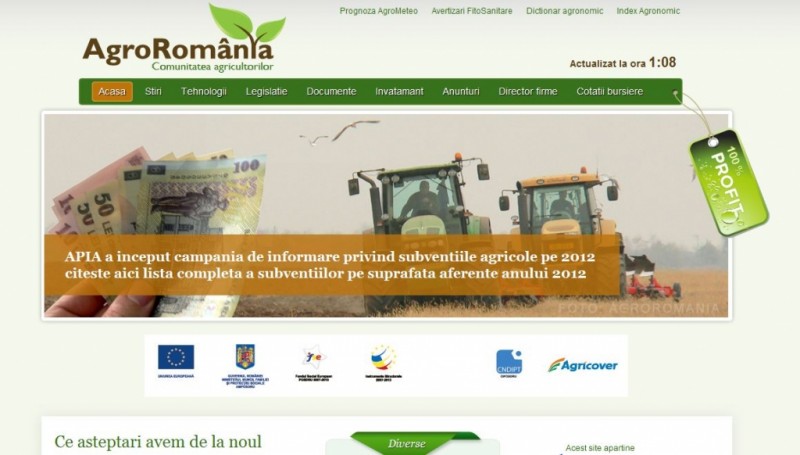 Agroromania.ro este un site dedicat agricultorilor din Romania , acest site contine stiri si noutati din agricultura, evenimente si targuri agricole , legislatie, dictionar agronomic, index agronomic.