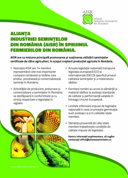 Alianța industriei semințelor din România(AISR) în sprijinul fermierilor din România.