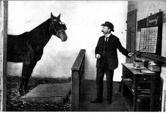 Toate povestile despre inteligenta animalelor isi pierd din stralucire in fata reusitelor miraculoase ale catorva cai ce au provocat uimirea lumii intregi la inceputul secolului al XIX-lea. Un batran rentier berlinez, Wilhelm von Osten, caruia ii placea sa creasca cai, l-a invatat sa calculeze pe un armasar rus. “Kluge Hans” (Hans cel Destept) nu numai ca batea din copita cifrele care ii erau aratate pe o tabla, ci stia sa adune si sa scada, sa inmulteasca si sa imparta la fel de bine ca un baiat de 14 ani.
