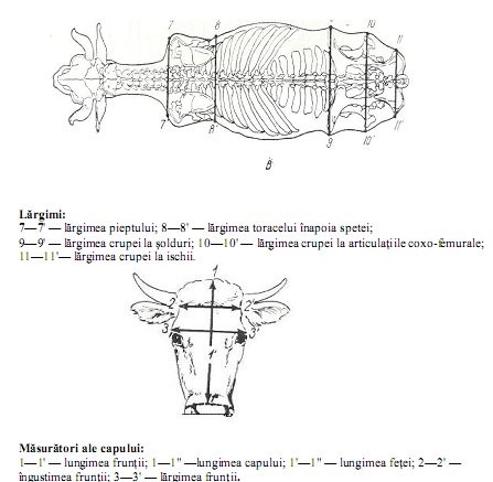 Lungimea spinarii se ia de la vîrful posterosuperior al spetei pîna la marginea posterioara a apofizei spinoase a ultimei vertebre dorsale.