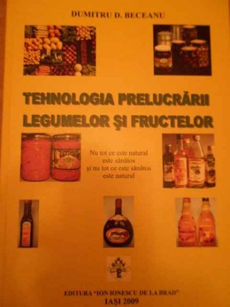 Aparuta in anul 2009, lucrarea "Tehnologia prelucrarii legumelor si fructelor" a domnului Dumitru Beceanu cuprinde o serie de informatii necesare oricarui student sau inginer in industria alimentara.