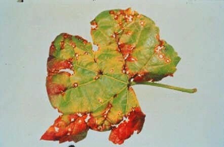 Boala este periculoasă în viile ce se irigă prin aspersiune, plantate pe terenuri ce reţin apa, sau pe malul unor ape. În afară de hibrizii producători direcţi, în anii cu primăveri şi veri umede mai sunt atacate şi unele soiuri altoite de viţă de vie ca: Champion, Diamond, Cabernet Sauvignon, Merlot, Afuz-Ali, Kiş-Miş, Regina Nera, Regina viilor, Cardinal, Ceauş.