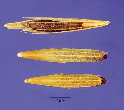 5. Descriere plantă: Plantă cu tulpină pubescentă sub panicul, frunzele au tecile deschise sub forma literei V și ligula de 1 m iar paniculul este unilateral.
