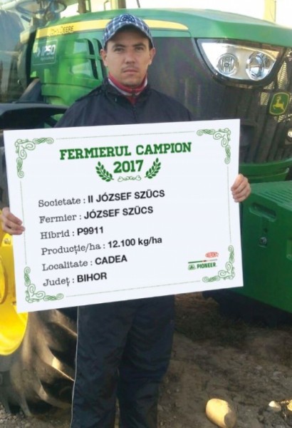 În județul Bihor, localitatea Cadea, fermier campion este Jozsef Szucs, care lucrează 250 ha, porumb a semănat anul trecut pe 80 ha și a obținut 12.000 kg/ha cu hibridul P9911. “Am semănat porumb după soia – 30 ha, și grâu – 50 ha. În toamnă am arat, la 25-25 cm, și am continuat lucrările în primăvară, am nivelat și am trecut cu combinatorul. Am aplicat complexe 20.20.0 - 300kg/ha la semănat, în perioada 4-20 aprilie. Cultura a mai beneficiat de două erbicide, de o prașilă mecanică în faza de 78 frunze când am mai aplicat și 200 kg/ha de nitrocalcar. Am recoltat începând cu sfârșitul lui septembrie, pot spune că a decurs totul bine și am fost mulțumit de producție”, a declarat fermierul campion. Acesta a adăugat că în această campanie va semăna porumb pe 70 ha.