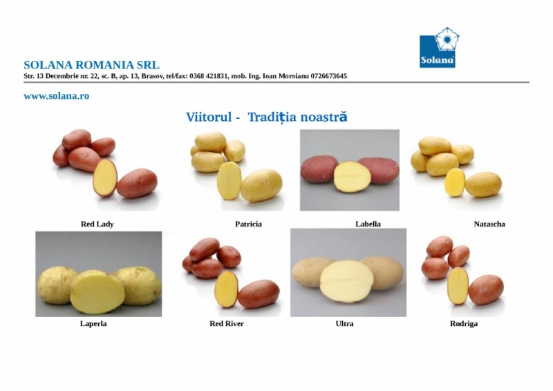 Soiurile comercializate de Solana Romania sunt urmatoarele : Minerva, Laperla,Flavia, Patricia, Primadonna, Ultra, Satina, Red Lady, Labella, Rodriga, Rosara.