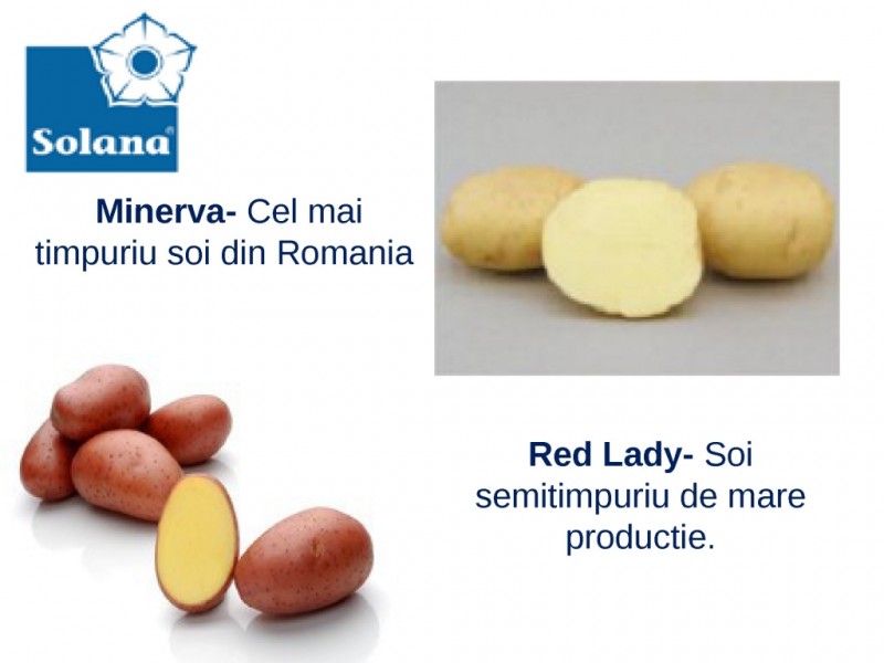 Solana Romania produce si comercializeaza cartof samanta din soiurile: Minerva si Red Lady , categorie biologica ELITA si Clasa A.