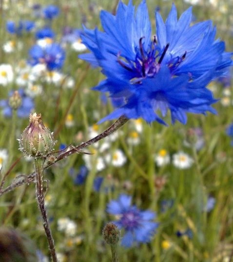 5. Descriere plantă: plantă cu tulpini erecte, simple sau ramificate slab, de 50- 80 cm, Frunze bazale pețiolate, lanceolate, cu peri lanați, la înflorire uscate, Frunze tulpinale, sesile, inflorescențe cilindric ovidale, flori marginale radiale, albastre, rar alb sau roz, achene cu papus. Semințele nu mai germinează la o adâncime mai mare de 6 cm în sol.