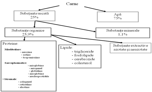 Aceasta influenteaza compozitia chimica a carnii dupa cum urmeaza: