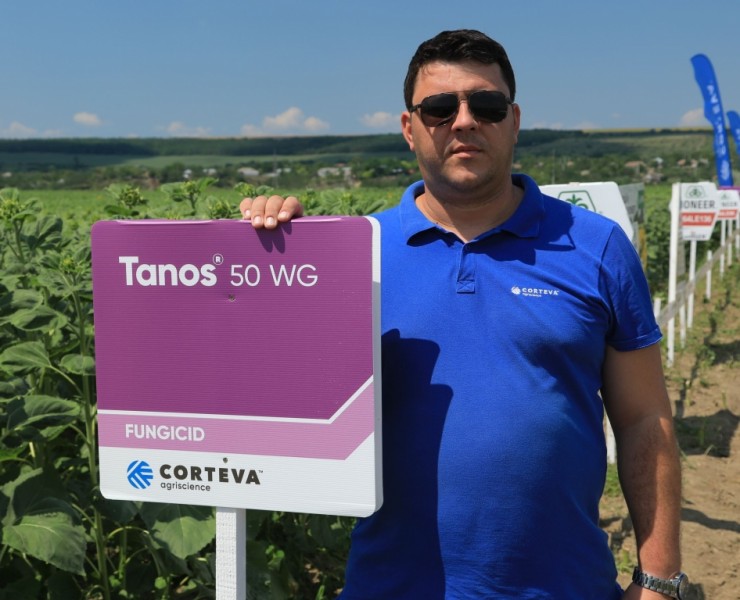 Și întreținerea culturii de floarea-soarelui a fost realizată cu produse din portofoliul companiei Corteva și de departe cel mai important produs pentru această cultură este fungicidul Tanos® 50 WG.