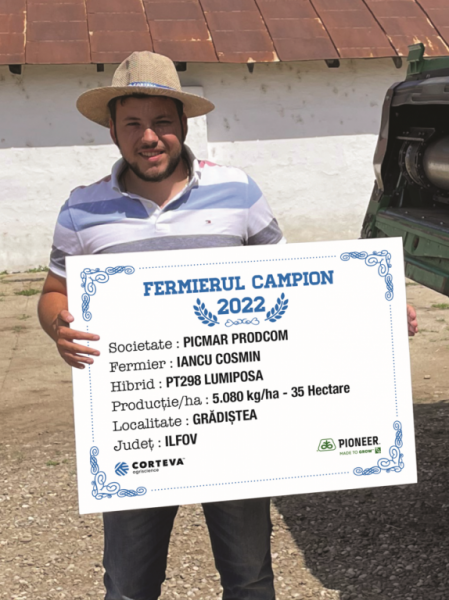 Un alt fermier campion este tânărul Cosmin Iancu, fermier care lucrează 1.100 ha în județul Ilfov. Campania aceasta a semănat rapiță pe 220 ha, suprafață destinată exclusiv hibrizilor Pioneer. Pe o suprafață de 35 ha, cu hibridul PT298, a obținut o producție excelentă, respectiv 5.080 kg/ha.