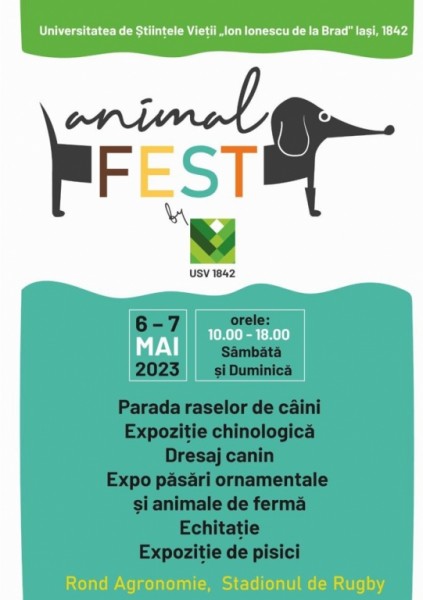 Câini, cai, pisici, iepuri, păsări ornamentale, animale de fermă (vaci, oi, capre), expoziție de reptile și insecte - toate vor putea fi admirate în perioada 6 – 7 mai, la „Animal FEST by USV Iași”, eveniment organizat de către Universitatea de Științele Vieții „Ion Ionescu de la Brad”.