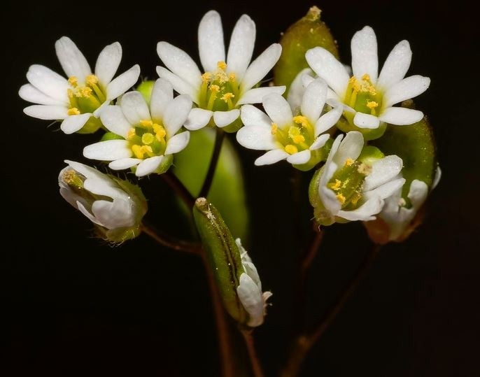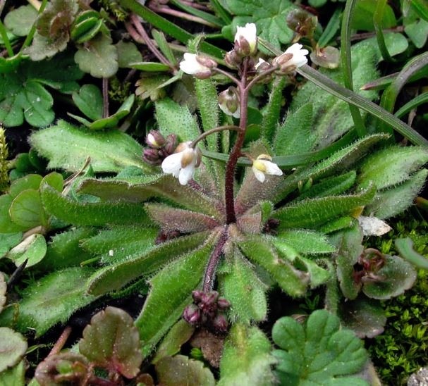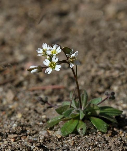 5. Descriere plantă: Plantă cu rădăcini subţiri, ramificate, tulpini de 2-15 cm, Frunze în rozetă, ovate, obovate sau lanceolate, racem scurt şi des cu flori albe, cu petale adânc bifidate, silicule eliptice, cu seminţe brune, numeroase, foarte mici.