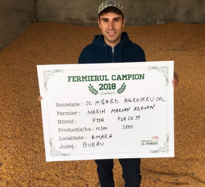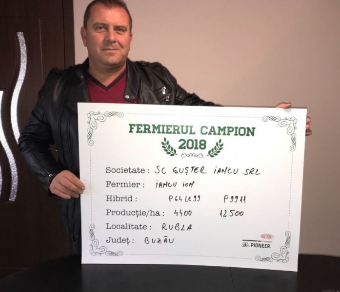 Cu aceeași producție, 4.400 kg/ha obținută la hibridul P64LE99, fermier campion a devenit și Ion Iancu din județul Buzău. Acesta lucrează 400 ha, iar floarea-soarelui a avut în acest an pe 80 ha. “Am semănat floarea-soarelui după grâu și porumb. Înainte de arătură am aplicat superfosfat - 150 kg/ha , apoi am arat la 28 cm, în primăvară am pregătit terenul cu discul, o trecere sau două în funcție de cum a fost cazul și am aplicat aproximativ 150 kg/ha îngrășământ triplu 16. Apoi am semănat la începutul lunii aprilie, atunci când am aplicat uree – 200 kg/ha. Am aplicat două erbicide, unul în preemergență și unul în vegetație, dar și două îngrășăminte foliare. Aceasta a fost toată tehnologia, am recoltat începând cu finalul lunii august, a fost chiar un an foarte bun pentru floarea-soarelui. Și anul viitor voi alege același hibrid, pentru că m-a surprins în acest an în ceea ce privește producția”, punctat fermierul campion.