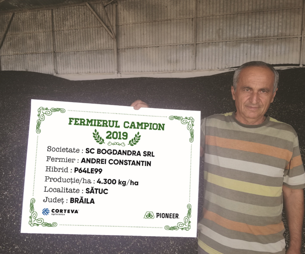 În cadrul fermei Bogdandra, Andrei Constantin a devenit fermier campion datorită aceluiași hibrid - P64LE99, care i-a oferit 4.300 kg/ha. Dânsul a filmat chiar și un testimonial, pe care îl găsiți pe pagina de YouTube Corteva – playlist România, despre hibridul care i-a adus producții record an de an. Lucrează de 40 de ani în agricultură, timp în care a testat sute de produse, însă P64LE99 i-a oferit cele mai bune rezultate.