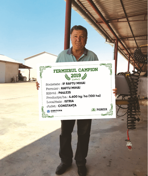 Un alt fermier campion din această zonă a țării este domnul Mihai Raftu care lucrează 2.500 ha, floarea-soarelui a avut în acest an pe 400 ha și a obținut 4.600 kg/ha cu hibridul P64LE25. “Am semănat după păioase, așa că am arat în toamnă, în primăvară am discuit și am efectuat o lucrare cu combinatorul, după care am semănat la început de aprilie, atunci când am fertilizat cu îngrășământ pe bază de azot – 33% și sulf – 22% - 100 kg/ha. Am erbicidat în două treceri și doar atât am dat culturii, pentru că era prea secetă și credeam că nu o să fie cultura prea bună, însă a plouat totuși și s-a îndreptat, astfel că am făcut o producție bună”, a punctat fermierul constănțean.