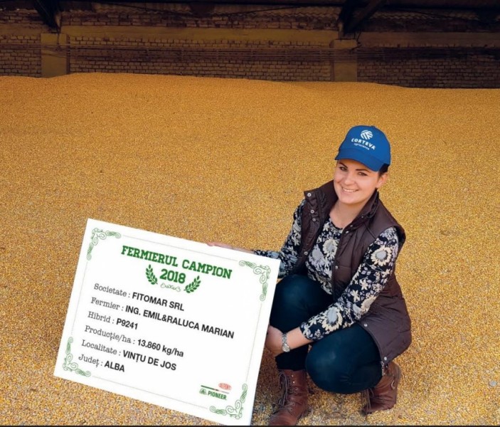 În cadrul societății Fitomar Raluca Marian a obținut 13.860 kg/ha cu hibridul P9241. “Lucrăm 1.000 ha, porumb am avut anul acesta pe 275 ha, iar plantă premergătoare a fost grâul. Am arat în luna august la o adâncime de 28 cm, pregătirea terenului a avut loc primăvara, atunci când am aplicat 280 kg/ha de îngrășăminte complexe 16.16.16 și am încorporat cu combinatorul. Începând cu 13 aprilie am semănat 68.000 b.g/ha și tot atunci am aplicat și azotat de amoniu – 200 kg/ha. Cultura a primit două erbicide și am recoltat începând cu 8 octombrie”, a precizat Raluca Marian, care a adăugat faptul că anul viitor va semăna cu porumb 270 ha.