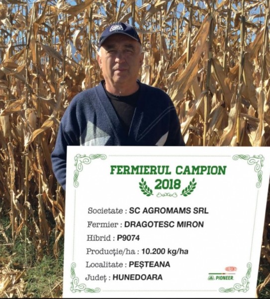 Un alt fermier campion din județul Hunedoara este domnul Miron Dragostesc, care a obținut 10.200 kg/ha cu hibridul P9074.