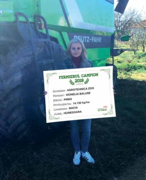 Şi în judeţul Hunedoara s-au înregistrat anul trecut producţii foarte bune la porumb. Cele mai bune rezultate le-a înregistrat doamna Vionelia Bălușe, care a obținut 14.150 kg/ha cu hibridul P9903. “În cadrul a 5 societăți lucrăm în total 4.400 ha, iar anul trecut am avut 1.800 ha cu porumb, am semănat după floarea-soarelui, grâu, dar am avut și monocultură. Am arat în toamnă, iar 400 ha le-am scarificat, după care în primăvară am aplicat între 300 și 350 kg/ha îngrășăminte complexe în funcție de fiecare solă, după care am pregătit terenul cu combinatorul sau freza și am efectuat o lucrare cu discul. Am semănat în cea de a doua decadă a lunii aprilie și tot atunci am aplicat 25 kg/ha de îngrășământ starter. În vegetație, acolo unde am putut intra, am aplicat azot în două tranșe a câte 150 kg/ha, iar acolo unde porumbul a fost prea mare am făcut o singură trecere cu 250 kg/ha de azot. Am erbicidat toată suprafața în postemergență, iar unde a fost nevoie am corectat în vegetație. Am aplicat un îngrășământ foliar cu zinc, pe toată suprafața, iar unde a fost nevoie am revenit și cu a doua trecere, în rest nu am mai aplicat nimic, doar 30% din suprafața am prășit-o. Am început campania de recoltat în luna septembrie și am terminat în luna decembrie. În această primăvară voi semăna cel puțin 2.000 ha cu porumb, dar suprafața poate ajunge și la 2.500 ha în funcție de cum se dezvoltă rapița până în luna martie”, a precizat aceasta.