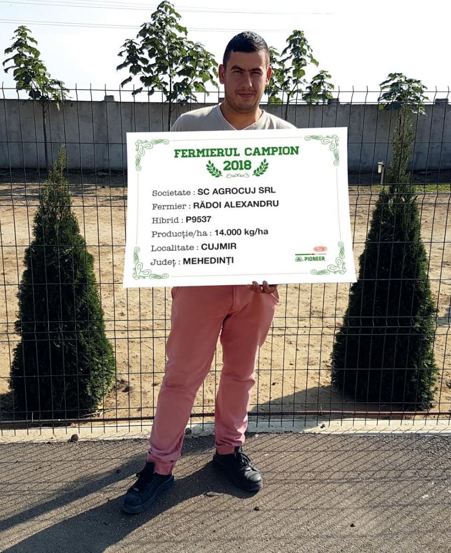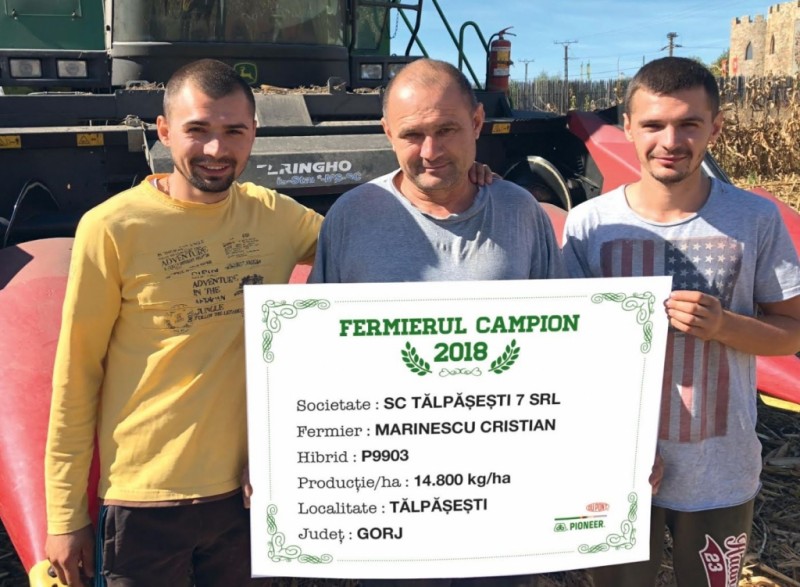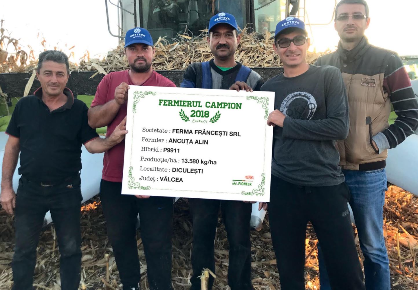 Alin Ancuța este primul fermier campion din județul Vâlcea. Acesta a semănat hibridul P9911 și a obținut 13.580 kg/ha. “Anul trecut am lucrat 1.300 ha, însă am crescut suprafața la 2.000 ha. Am avut 200 ha de porumb și am semănat după orz, rapiță sau grâu. Astfel că am arat sau scarificat, în funcție de solă și planta premergătoare. În primăvară am fertilizat cu triplu 15 - 250 kg/ha și uree - 200 kg/ha, după care am efectuat o lucrare cu discul. Am semănat în jur de 70.000 b.g/ha în prima decadă a lunii aprilie. Am erbicidat toată suprafața o singură dată, iar unde a fost cazul am corectat cu un alt erbicid. Am prășit pe o suprafață mai mică, în jur de 50 ha, am aplicat 150 kg/ha de azot. Am recoltat în luna octombrie, a fost o campanie bună, fără probleme, motiv pentru care anul acest voi semăna 500 ha cu porumb și am ales pentru toată suprafața hibrizi Pioneer, dintre care doi hibrizi pe care i-am mai cultivat - P9911 și P9903, plus alți doi hibrizi noi ”, a precizat fermierul campion.
