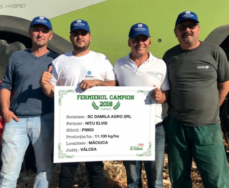 Tot în județul Vâlcea fermier campion a devenit și domnul Elvis Nițu, care lucrează 1.300 ha, porumb a avut pe 200 ha și a obținut 11.100 kg/ha cu hibridul P9903. “Am semănat porumbul după floarea-soarelui, grâu sau chiar după porumb. Am arat din toamnă, iar în primăvară am pregătit patul germinativ și am aplicat 250 kg/ha de îngrășământ complex 20.20.0., după care am semănat 70.00 b.g./ha în perioada 10 aprilie – 12 mai. Am aplicat un singur erbicid, fără alte tratamente și am recoltat în perioada 5-10 octombrie. În acest an voi semăna 300 ha cu porumb și am ales hibrizii P9911 și P9903”, a declarat fermierul.