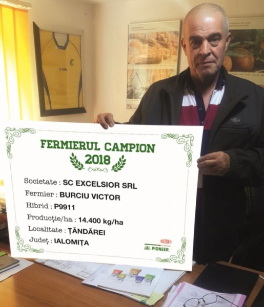 Același hibrid - P9911- a performat și în județul Ialomița, acolo unde fermierul Victor Burciu a obținut 14.400 kg/ha. “În acest an am semănat 170 ha cu porumb, iar plante premergătoare au fost floarea-soarelui și porumbul. Am arat din toamnă la 33-35 cm, în primăvară am fertilizat cu îngrășăminte complexe 18.46.0 – 200 kg/ha; azotat de amoniu -125 kg/ha; uree NG – 150 kg/ha, în a doua decadă a lunii aprilie am semănat 78.000 boabe germinabile/ha. Cultura a primit 3 erbicide, un foliar -10 l/ha în faza de 6-8 frunze, iar unde a fost cazul am aplicat și tratamente pentru Tanymecus. Cultura a fost irigată în 3 tranșe a câte 800 mc/ha. Nu am prășit în acest an, iar campania de recoltat a debutat la jumătatea lunii septembrie”, a declarat fermierul campion. Acesta a mai adăugat faptul că în următoare campanie va semăna 330 ha cu porumb și va alege hibridul P9911, cel care i-a oferit cea mai bună producție, dar vrea să încerce și hibrizi noi.