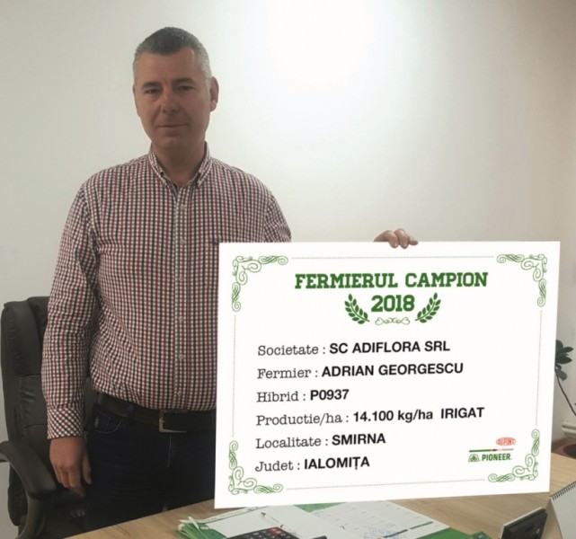 Un alt fermier campion din județul Ialomița este Adrian Georgescu, care a semănat 650 ha cu porumb, dintre cele 2.600 pe care le lucrează, și a obținut 14.100 kg/ha cu hibridul P0937 și 11.980 kg/ha cu hibridul P9903. Primul hibrid - P0937 este un hibrid tardiv ce se recomandă a fi cultivat în condiții de irigat, iar cel de al doilea – P9903 este cel mai bine vândut hibrid semitimpuriu de la noi din țară.