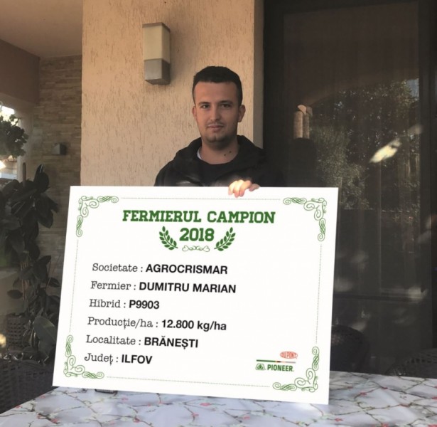 Marian Dumitru este următorul fermier campion din această zonă a țării. Acesta își desfășoară activitatea în Brănești – Ilfov, iar în acest an a obținut 12.800 kg/ha cu hibridul P9903. “Lucrez 630 ha, iar porumb am semănat în acest an pe 30 ha după floarea-soarelui. În toamnă am arat la 30 cm, am discuit și am aplicat complexe 18.46.0 - 200 kg. În primăvară am intrat cu un combinator și am semănat în jurul datei de 15 aprilie 70.500 boabe germinabile/ha. Odată cu semănatul pe rând, am aplicat 250 kg/ha de azotat. Am erbicidat în preemergență și în postemergență timpurie. În stadiu de 4 -5 frunze am mai aplicat un foliar bogat în zinc. Am recoltat în prima parte a lunii septembrie și am fost mulțumit de producție, de aceea anul viitor voi semăna 80 ha, cred că voi alege același hibrid în principal, însă vreau să încerc și un hibrid nou ”, a afirmat agricultorul.