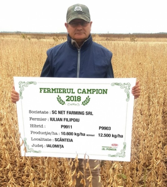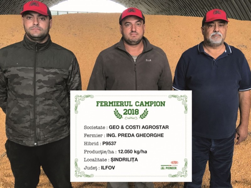 Fermier campion în județul Ilfov a devenit și domnul inginer Gheorghe Preda, care a obținut 12.650 kg/ha cu hibridul P9537. Acesta a ales un hibrid semitimpuriu, din grupa 350 FAO, ce are o foarte bună adaptabilitate, mai ales în condiții de stres termic și hidric. “Am avut în acest an 305 ha cu porumb, iar pregătirea terenului a constat în dezmiriștire, arătură de toamnă și administrarea a 600 – 700 kg/ha de TerraCalco. În primăvară am aplicat 200 kg/ha îngrășăminte complexe 20.20.0 și am efectuat o lucrare cu combinatorul, în timp ce la semănat am aplicat îngrășăminte 150 kg/ha. Am erbicidat doar preemergent, am aplicat un îngrășământ foliar pe bază de zinc, iar la faza de 6-8 frunze am prășit și am mai administrat pe rând 250 kg/ha de azotat de amoniu. Nu am aplicat alte tratamente în acest an, iar recoltatul a avut loc în perioada 25 august – 10 septembrie”, a declarat fermierul campion, care a mai adăugat faptul că a fost mulțumit de rezultatele obținute în fermă.