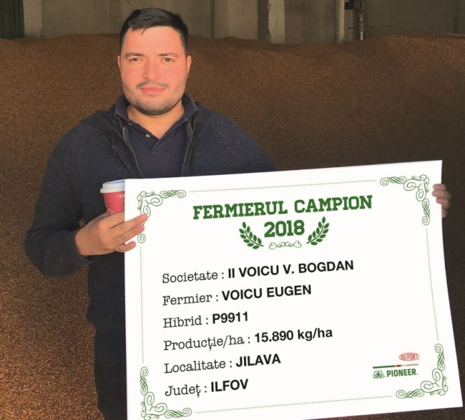 Cea mai bună producție din aceste două județe a fost obținută de fermierul Bogdan Voicu. Acesta asemănat 230 ha cu porumb în acest an și a obținut în acest an 15.890 kg/ha cu hibridul P9911 – un hibrid semitardiv din gama Optimum AQUAmax. “Am semănat porumbul după rapiță, încă din vară am erbicidat, apoi am scarificat și am mai erbicidat o dată, iar în lunile octombrie-noiembrie am arat și tot în toamnă am aplicat 200 kg/ha de triplu super fosfat. Ne-au ajutat foarte mult erbicidările din vară! În primăvară am pregătit terenul cu combinatorul, am erbicidat în preemergență, am aplicat îngrășăminte 150 kg/ha, iar la prașilă am aplicat 150 kg/ha de azot. În vegetație am mai aplicat două erbicide și un insecticid. Am început recoltatul în jurul datei de 15 septembrie, iar anul viitor voi semăna 450 ha cu porumb”, a afirmat Bogdan Voicu.