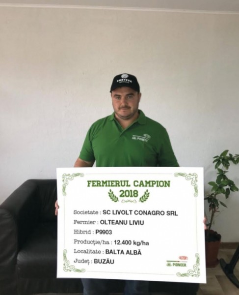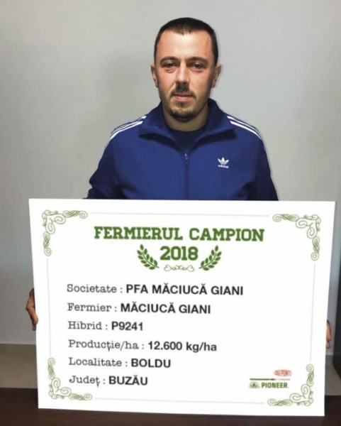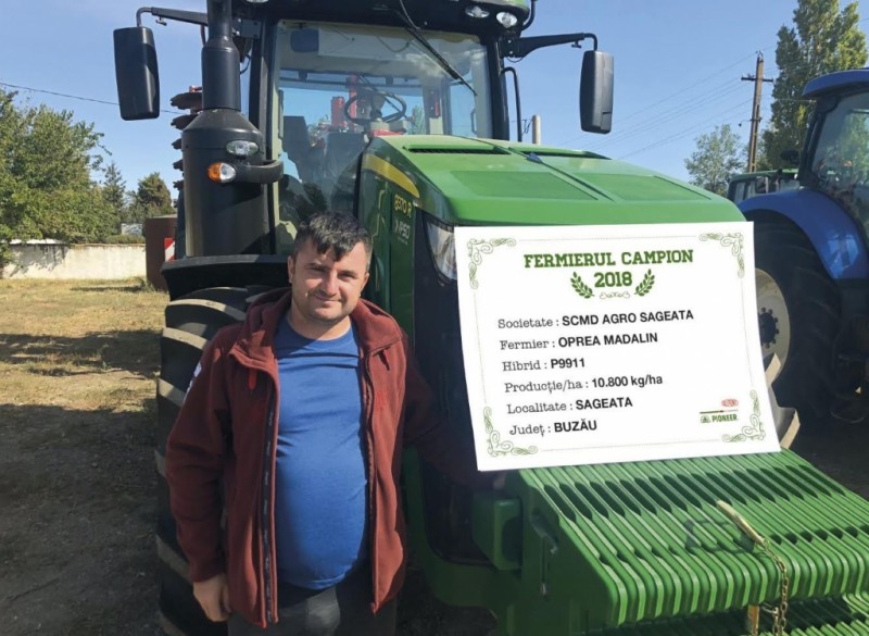 Un alt fermier campion din județul Buzău este Mădălin Oprea, care a obținut 10.800 kg/ha cu hibridul P9911. “Am avut porumb în acest an pe 280 ha, iar în total lucrez 740 ha. Am semănat fie după grâu, floarea-soarelui sau porumb. Am mers pe arătură de toamnă și am arat la o adâncime de minim 35 cm, iar la final de noiembrie, început de decembrie am discuit. În februarie am efectuat o lucrare cu combinatorul și am aplicat 18.46.0 – 200 kg/ha, înainte de semănat am intrat din nou cu combinatorul, iar în 4-5 aprilie am semănat 68.000 – 70.000 b.g/ha, atunci am mai aplicat în jur de 160 kg/ha de uree. Am erbicidat pe negru, iar al doilea erbicid l-am aplicat în faza de 6-7 frunze și am prășit în jurul datei de 15 mai. Nu am aplicat nici un tratament, iar campania de recoltat a început în jurul datei de 10 septembrie”, a declarat fermierul buzoian. Acesta a mai adăugat faptul că pentru următoarea campanie nu știe exact câte hectare va semăna cu porumb, asta pentru că această campanie de toamnă a fost dificilă și nu trebuie să vadă cum se vor comporta culturile deja semănate. Cu toate acestea crede că va semăna cel puțin 250 ha și va alege hibrizii P9911, P0216 și P9757.