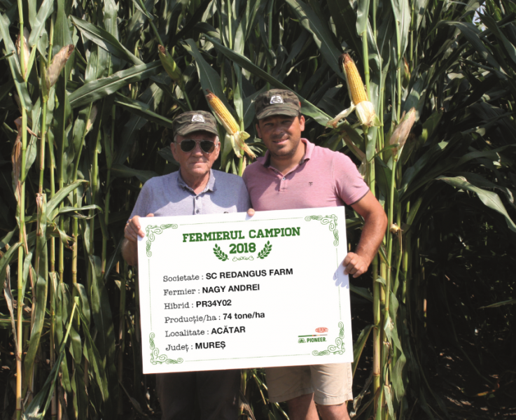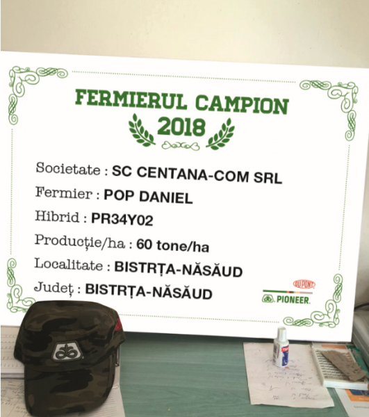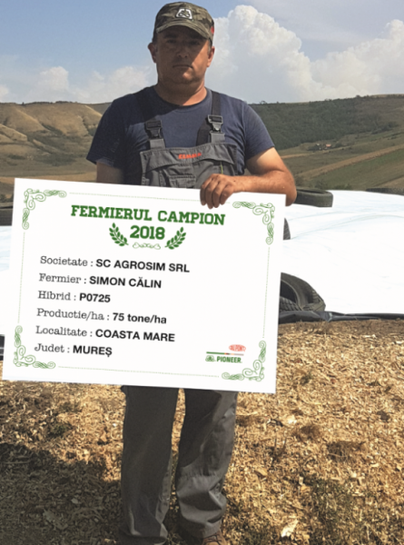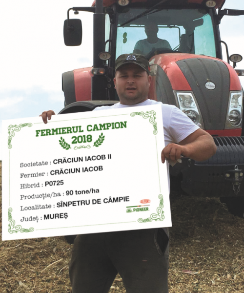 Primul fermier campion din această categorie este domnul Iacob Crăciun din Sânpetru de Câmpie, județul Mureș, care a obținut 90 t/ha cu hibridul P0725.