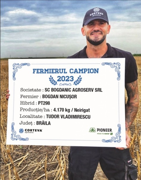 Primul fermier campion din această zonă este domnul Bogdan Nicușor care a ales hibridul PT298/Agile și a recoltat 4.170 kg/ha. Acesta își desfășoară activitatea în localitatea Tudor Vladimirescu, județul Brăila, lucrează 300 ha, iar rapiță a avut pe 50 ha, după orz. “Terenul a fost dezmiriștit, apoi am arat și l-am pregătit cu combinatorul. Am semănat la început de septembrie, atunci am și fertilizat cu sulfat de amoniu – 200 kg/ha. Toamna a fost fără tratamente, în schimb în primăvară am avut mai mult intervenții. Prima, în data de 10 martie, cu insecticidul Inazuma, aminoacizi și îngrășământ foliar pe bază de azot. Apoi, în jurul datei de 23 martie, am administrat azot - 125 kg/ha, după care, pe 7 aprilie, am administrat al doilea tratament cu fungicid, regulator de creștere și insecticid de contact. La final de aprilie am mai aplicat un insecticid sistemic și unul de contact, pot spune că a fost o intervenție esențială. Ultima intrare în cultură a fost cu îngrășământ, respectiv 125 kg/ha de azot la începutul lunii mai. Cultura a fost în neirigat, am avut noroc de ploi la momentul potrivit, iar producția a fost bună. Cât despre hibridul PT298, pot spune că am fost mulțumit, l-am ales și în această toamnă pentru 30 ha, iar pentru 15 ha am ales hibridul PT315”, a declarat fermierul campion.