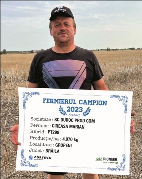 Tot în județul Brăila, în localitatea Gropeni, își desfășoară activitatea și următorul fermier campion, domnul Marian Cireașa. Acesta lucrează 600 ha, iar rapiță a avut pe 50 ha, după culturi de grâu și fasole. A ales hibridul Pioneer PT298/Agile și a obținut o producție de 4.070 kg/ha. “Terenul a fost arat, fertilizat cu 180 kg/ha de îngrășăminte complexe 18.46.0, apoi am discuit, am intervenit cu combinatorul și am semănat în perioada 1-10 septembrie. În toamnă, acolo unde am putut iriga, am udat de două ori - 22 l/ha și am aplicat un insecticid. Apoi în primăvară am administrat un fungicid, un insecticid la intrarea în vegetație. A doua intrare, tot cu insecticid și fungicid, a avut loc la apariția butonului floral, după care am fertilizat cu azot – 150 kg/ha și am mai udat o dată, aproximativ aceeași cantitate de apă – 22 l/ha. Am avut acest hibrid și anul trecut, îl aleg și pentru această toamnă pentru că am fost mulțumit de producția obținută”, a precizat domnul Marian Cireașa.