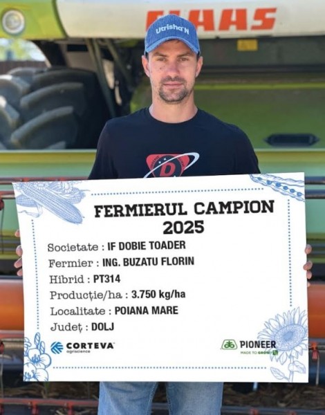 Rezultate excelente și pentru hibridul PT314, folosit în ferma IF Dobie Toader din localitatea Poiana Mare, unde s-au obținut 3.750 kg/ha.