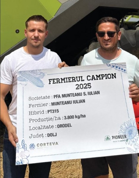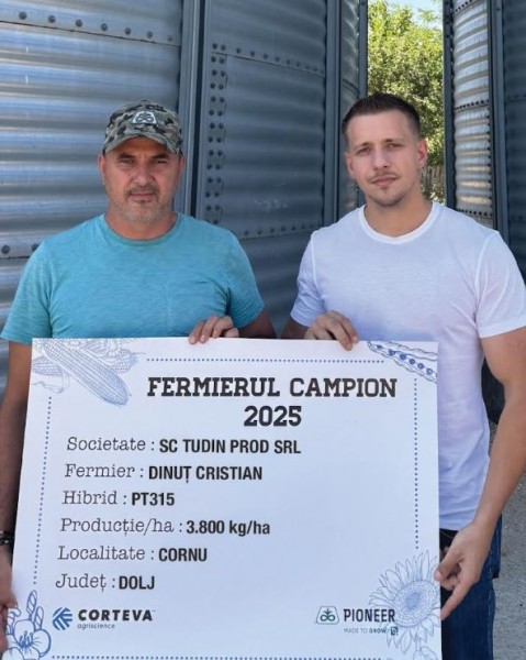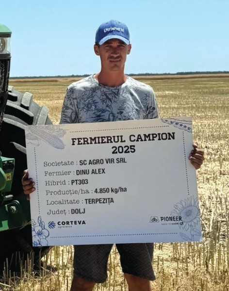 Primul fermier campion din județul Dolj este domnul Alex Dinu, de la societatea Agro Vir din localitatea Terpezița, care a obținut o producție de 4.850 kg/ha cu hibridul PT303.