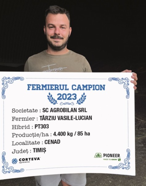 Primul fermier campion din județul Timiș este domnul Mihai Dan, societatea Transfime. Acesta își desfășoară activitatea în localitatea Fibiș, lucrează 800 ha și a obținut o producție de 5.300 kg/ha cu hibridul PT298/Agile. “Campania trecută am avut 260 ha cu rapiță, iar producția obținută cu hibridul PT298 pe o suprafață de 22 ha a fost de 5.300 kg/ha. Hibridul a fost semănat după orz, așa că am discuit de două ori pentru că a fost foarte mare secetă. Apoi am primit câteva ploi, am intervenit și am pregătit terenul, am fertilizat cu îngrășământ 15.40 – 200 kg/ha și am semănat la final de august. Am erbicidat preemergent, iar în stadiul de 8 frunze am administrat un fungicid și un îngrășământ pe bază de bor. Prima intervenție în primăvară a constat în fertilizare cu uree - 200 kg/ha, am mai administrat în jurul datei de 15 martie 100 kg/ha de uree, iar la începutul lunii aprilie am aplicat îngrășământ pe bază de azot și sulf – 180 kg/ha. În ceea ce privește tratamentele, am administrat mai întâi un fungicid simplu, apoi constant am intervenit cu insecticide, foliare și aminoacizi, cred că o dată la 10 zile am intervenit, probabil că au fost 5-6 treceri, ultima dată am mai administrat un fungicid și un insecticid. Cultura a fost în neirigat, iar recoltatul a avut loc la finalul lunii iunie, început de iulie și am fost mulțumit de producția obținută. În această toamnă deja am semănat rapița, hibridul PT298 pe o suprafață de 40 ha, iar PT315 pe 20 ha”, a declarat fermierul campion.