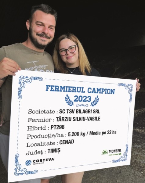 Hibrizii Pioneer PT298 și PT303 au oferit rezultate foarte bune și fermele familiei Târziu din Cenad, respectiv TSV Bilagri și Agrobilan. Domnul inginer Silviu-Vasile Târziu a obținut 5.200 kg/ha cu hibridul PT298/Agile, pe o suprafață de 22 ha, iar domnul Vasile-Lucian Târziu a obținut 4.400 kg/ha cu hibridul PT303 Sclerotinia Protector, pe o suprafață de 85 ha. Ce tehnologie au aplicat cei doi și cât de mulțumiți au fost de rezultatele obținute, ne-a specificat domnul inginer Silviu-Vasile Târziu: “Cultura de rapiță a fost semănată după grâu și în cazul ambilor hibrizi a fost aplicată aceeași tehnologie. Mai întâi terenul a fost dezmiriștit la 25-30 cm, apoi am intervenit cu un disc fin pentru mărunțire, după care am intervenit cu un tăvălug cu pinteni, am fertilizat cu 5 zile înainte de semănat, atunci am administrat 150 kg/ha îngrășăminte NP cu sulf, apoi am semănat, în perioada 1-10 septembrie, și am aplicat erbicid preemergent. În luna octombrie, după răsărirea frunzelor reale, am administrat 250 kg/ha de nitrocalcar, precum și un tratament cu fungicid și îngrășământ foliar pe bază bor. În primăvară am fertilizat cu 250 kg/ha de uree și am mai fertilizat o dată în luna aprilie cu nitrocalcar -150 kg/ha. În ceea ce privește tratamentele, pot spune că au fost trei la număr. Prima oară am intervenit în luna martie cu un tratament pe bază de tebuconazol, amestecat cu protioconazol, împreună cu un insecticid sistemic. Al doilea tratament a fost compus din protioconazol cu procolaz, iar în luna iulie, după căderea florilor, am aplicat strobilurină împreună cu tebuconazol. Bineînțeles, din cauza apariției dăunătorilor, am aplicat insecticide sistemice și de contact, în total au fost 3 treceri. Am recoltat la final de iunie, început de iulie. În această toamnă situația este mai dificilă din cauza lipsei umidității din sol, sperăm să avem parte de precipitații pentru că am semănat PT298 – 154 ha și PT303 – 120 ha.”