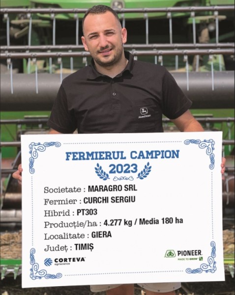 În cadrul societății Maragro din Giera, județul Timiș, domnul inginer Sergiu Curchi se ocupă de o suprafață de 7.000 ha, dintre care, campania trecută, rapiță a fost semănată pe 180 ha, după grâu. Hibridul PT303 Sclerotinia Protector s-a comportat foarte bine în această fermă, media obținută fiind de 4.277 kg/ha. “În fermă au fost semănate 2.500 ha cu rapiță, hibridul PT303 ocupând o suprafață de 180 ha. În funcție de specificitatea terenului, ori am scarificat, ori am intervenit cu un utilaj topdown, apoi am fertilizat cu îngrășăminte complexe triplu 15 cu 11% sulf – 200 kg/ha, după care am efectuat o lucrare cu combinatorul și am semănat după data de 20 august, la 1.5 cm adâncime, 50.000 - 55.000 b.g/ha. Am erbicidat preemergent și după răsărire am administrat un tratament pe bază de tebuconazol, îngrășământ foliar pe bază de bor și insecticid de contact. După 1 martie am fertilizat cu uree 200 kg/ha, apoi a urmat o trecere cu insecticid și bor, apoi a urmat primul tratament cu tebuconazol și protioconazol, dar am folosit și un îngrășământ NPK cu aminoacizi – 3 kg/ha, de specificat că la fiecare intervenție adăugăm îngrășământ foliar pe bază de bor sau sulf. A mai urmat o administrare de îngrășământ cu azot și sulf, iar la începutul înfloritului am făcut un tratament cu strobilurină și boscalid, împreună cu insecticid sistemic și de contact. Recoltatul a avut loc la începutul lunii iulie, iar producțiile au fost mulțumitoare”, a specificat domnul Curchi. Acesta a mai adăugat faptul că și în această toamnă hibrizii Pioneer PT298 și PT303 au ocupat un loc importat în alegerile din fermă, suprafața totală ocupată de acești doi hibrizi fiind de 600 ha.