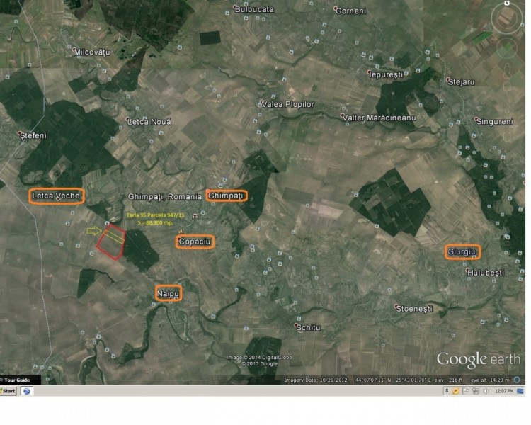 FOR SALE - De Vanzare Teren Extravilan - Agricol Ghimpati ( Copaciu ) , GR. Plan parcelar. 100% comasat. Clasa de fertilitate : I. Locatie - Tarla 95 , Parcela 947/13. Suprafata - 88,300 mp. Deschidere ~ 85 m. Pret - 0,43 euro/mp. Pret total : 37,969 euro - negociabil Ideal Investitii : Agricultura , Energie Regenerabila. Telefon : 0751-07.39.09