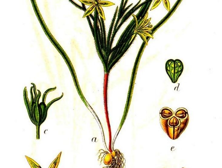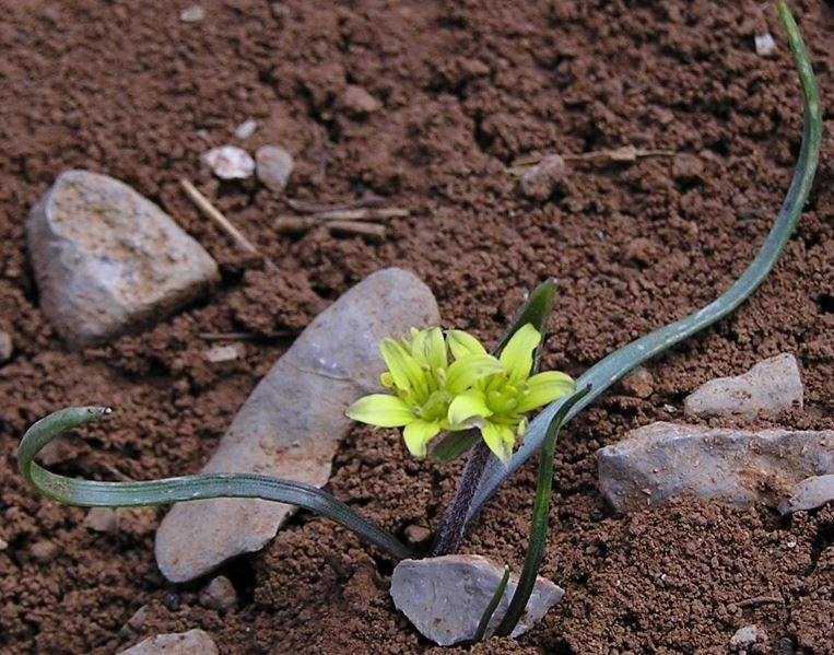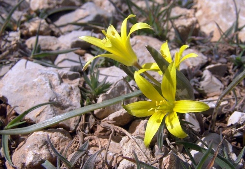 5. Descriere plantă: Plantă cu 2 bulbi într-o tunică comună, cu o înălţime medie de 10-20 cm, cu frunze înguste, liniare şi flori galbene. Fructul este capsulă.