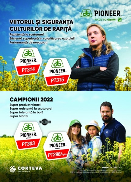 Doamna Cîrjă a menționat faptul că din portofoliul de rapiță Corteva Agriscience face parte o serie importată de hibrizi care campania trecută au oferit producții ridicate și chiar recorduri în unele ferme. Este vorba despre PT303, PT298/Agile, precum și mai noii hibrizi PT314 și PT315, care vor deveni alegerile preferate ale fermierilor, după cum mai susține dumneaei.