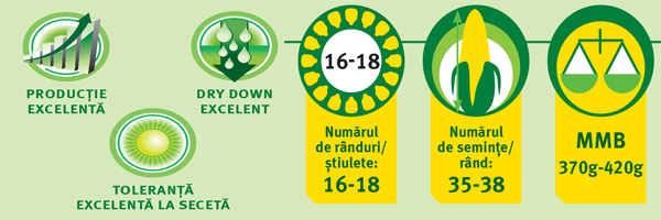 • Foarte bună productivitate, cu toleranță bună la secetă și arșiță.