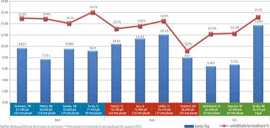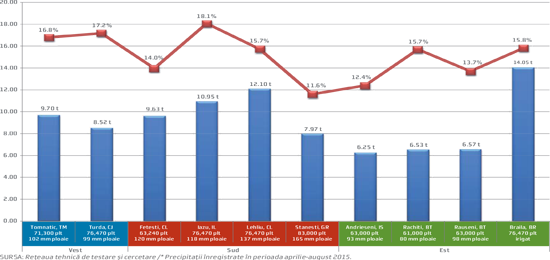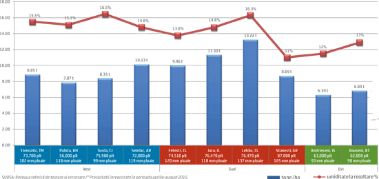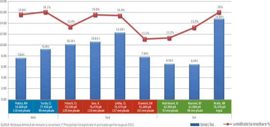 *Maturitatea relativă (RM) este dată de numărul de zile cu temperaturi biologic active, de la răsărit până la maturitatea fiziologică (apariţia