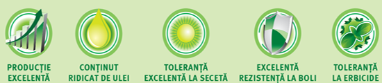 • Cea mai ridicată rezistență genetică la lupoaie din România (Orobanche cumana) până la rasa G, inclusiv (BR1, BR2 & BR3) și rezistență genetică la rasele de mană cunoscute în România.