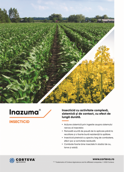 Compania Corteva Agriscience vă pune la dispoziție soluția completă pentru controlul celor mai importanți dăunători ai acestei culturi – insecticidul INAZUMA.