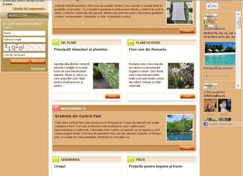 Infogradina.ro este un portal despre plante și flori de gradină. Site ul cuprinde informații despre plante decorative, fructe, legume și plante medicinale, flori, pomicultură, întreținere gradină dar și despre piața acestor produse.