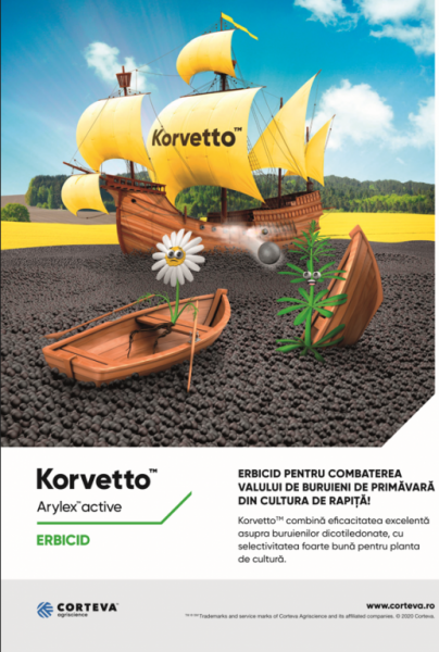 Pentru aplicarea în primăvară, compania Corteva Agriscience vă pune la dispoziție cea mai avansată soluție tehnologică pentru combaterea buruienilor dicotiledonate – erbicidul KORVETTO, erbicidul nr. 1 pentru controlul din primăvară al buruienilor din cultura de rapiță.