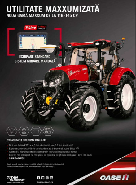 Fiecare tractor Case IH Maxxum de la 116 la 145 CP, achiziționat în această perioadă vine cu sistem de ghidare manuală T-Line PROTRACK în echiparea standard.