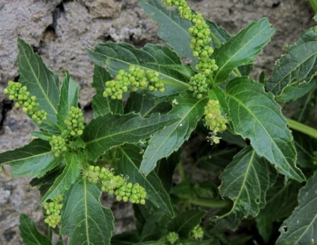 5. Descriere plantă: Plantă cu miros neplăcut, fără latex, glabră sau uşor păroasă, cu tulpini ramificate de la bază, de 10-50 cm înălţime, frunze simple, opuse, ovate sau lanceolate, flori galben-verzui, unisexuate, axilare, dispuse dioic, fruct capsulă.