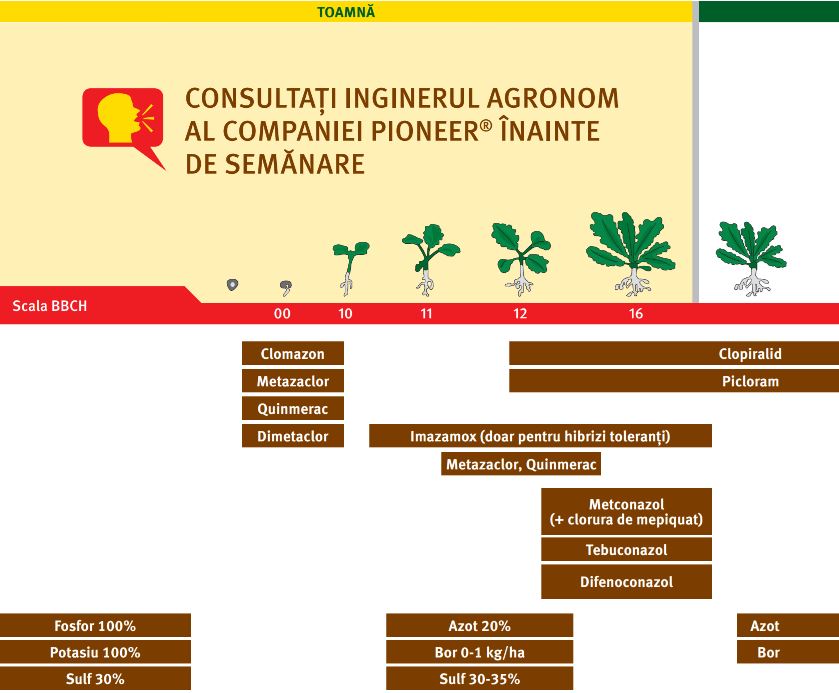 În managementul culturilor de toamnă, este esențială aplicarea regulatorilor de creștere în tehnologie. Aplicarea regulatorului de creștere primăvara când tulpina principală are până la 20 cm sporește dezvoltarea ramificațiilor și scurtează planta.